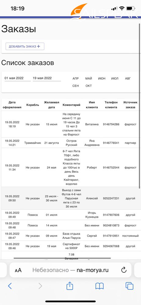 - Заказ свежих морепродуктов на борт катера