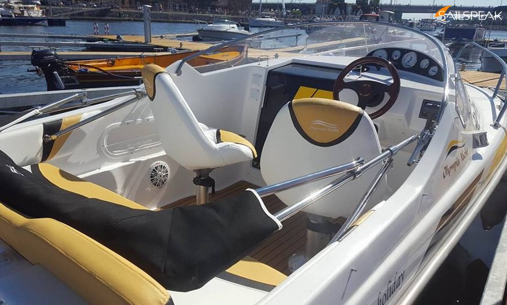 Charter boat an 18' Olympia Holiday 570 Cuddy Cabin for up to 5 people.